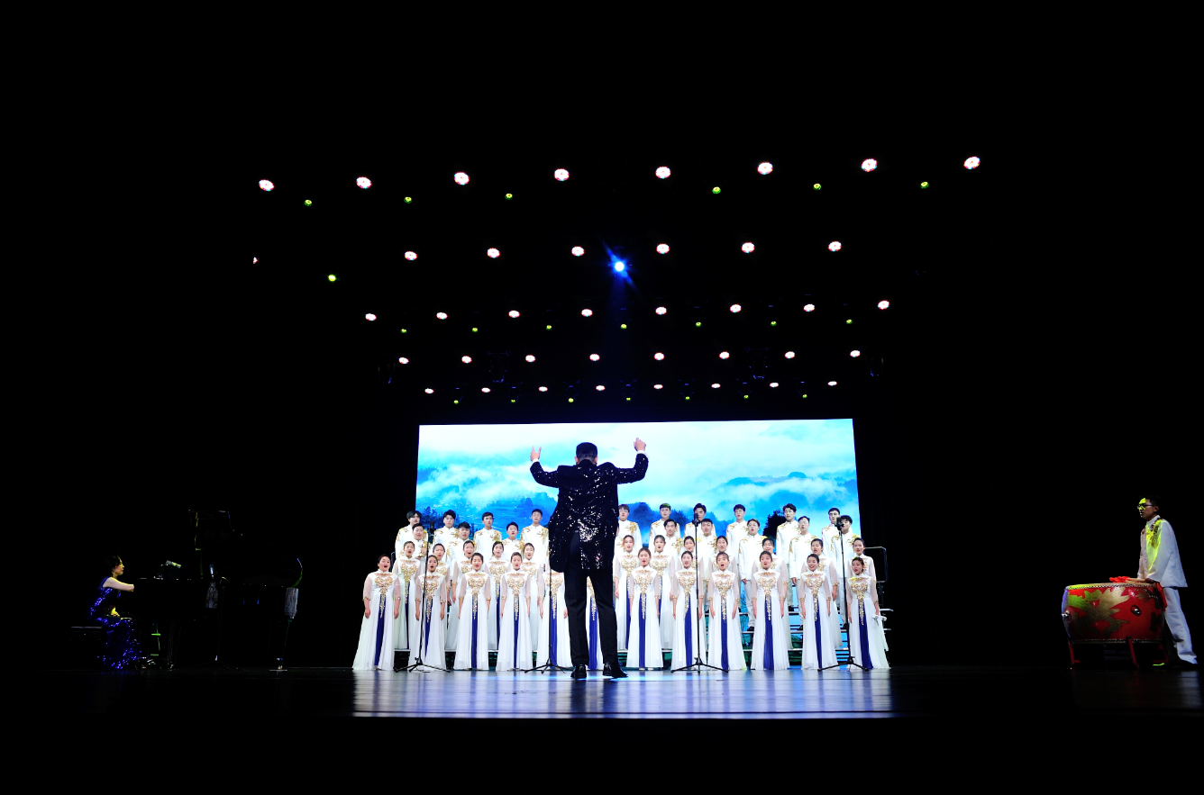 曲阜师大新闻中心讯6月19日晚,“颂歌献给党”2021年山东省大学生合唱艺术节暨中小学教师合唱展示活动汇报演出在青岛举行,省教育厅副厅长孙晓筠出席并作讲话。我校“儒风海韵”合唱团应邀参加展演,激情演绎官宇博士的原创佳作《谷雨梯田》,合唱队的完美表现赢得在场观众的阵阵掌声。在展演颁奖环节,音乐学院院长肖桂彬代表团队上台领奖。