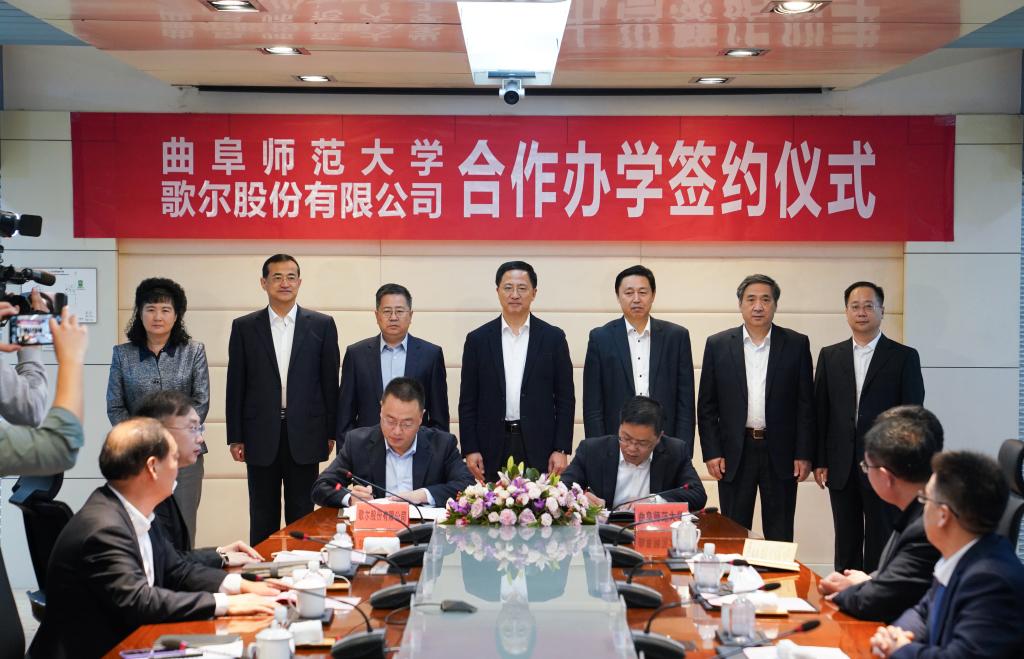 仪式上,胡钦晓与歌尔股份有限公司高级副总裁蒋洪寨,分别代表校企双方签订了合作办学协议。根据协议,曲阜师大将与歌尔公司共建“安博(中国)歌尔工学院”,并将在协同育人、共建专业、模式创新等方面开展全面合作,构建面向未来的工程科技拔尖创新人才培养体系,培养输送适应经济社会发展和产业升级转型所需的实用型制造工程师。
