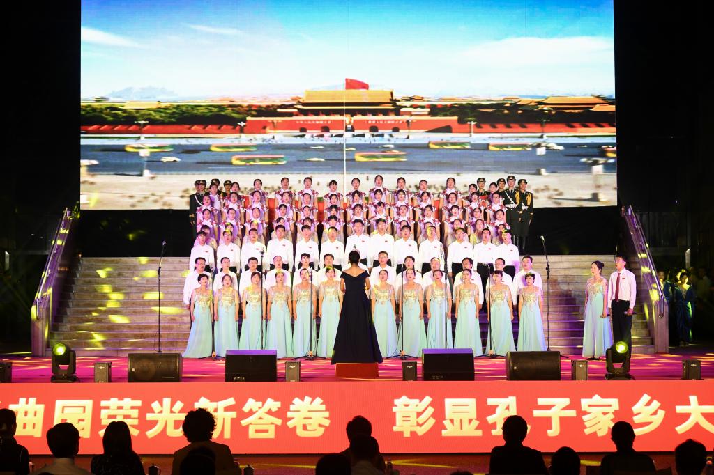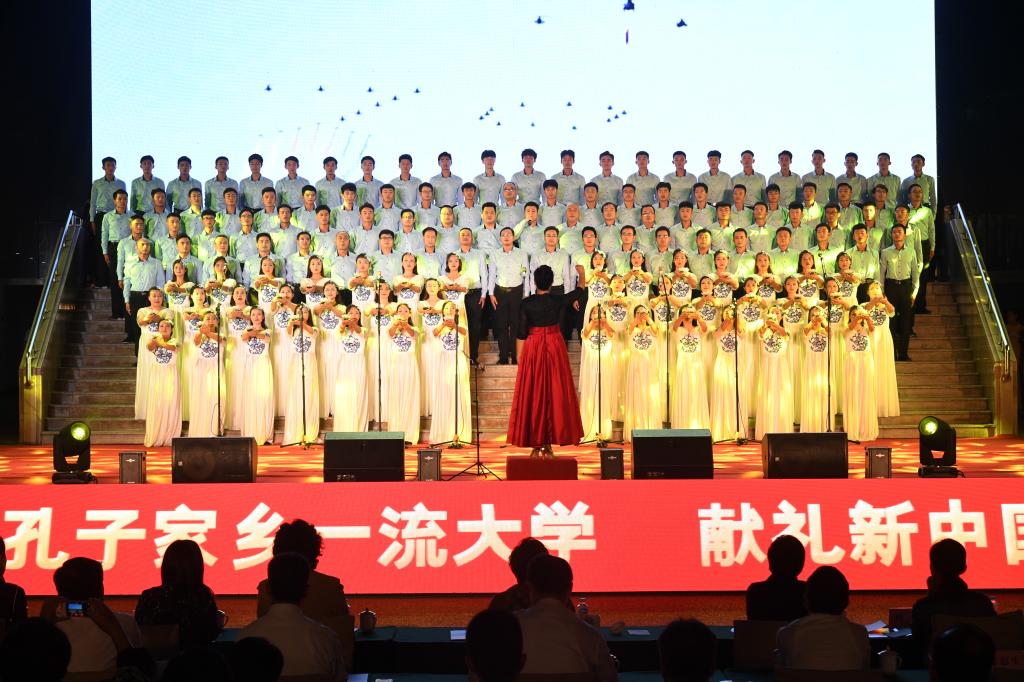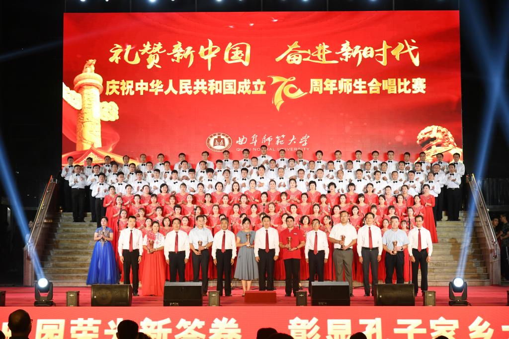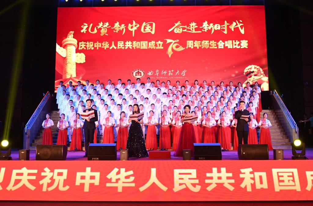 在礼赞新中国的歌声中,曲园人不忘初心,在奏响新时代奋进的旋律中,曲园人牢记使命,必将以加快建设孔子家乡一流大学的新担当、新成就向伟大祖国献礼!