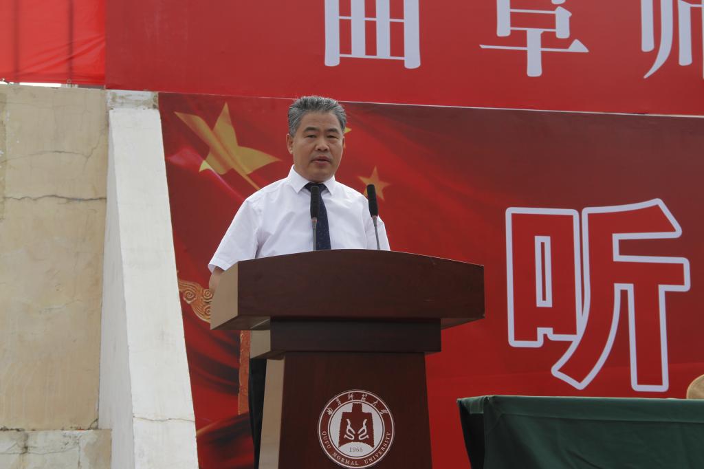 党委副书记扈庆学在动员大会上讲话。他指出,军训是学校进行国防教育的重要组成部分,是大学的第一课,更是必修一课、重要一课。希望同学们能够在军训中通过铁的纪律、铁的要求磨练出铁的意志、铁的品质;希望同学们传承曲园优良传统,将军训精神与曲园精神结合起来,在军训中、在未来的学习生活中充分汲取养分,修得大智慧,身沐君子风,以更大的情怀、更苦的奋斗、更优的才干,干出宏伟事业,成就精彩人生。