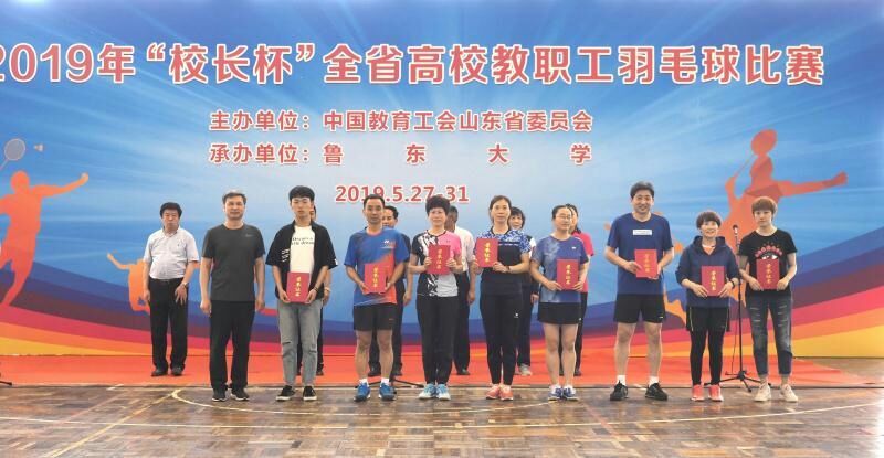 5月30日,由中国教育工会山东委员会主办,鲁东大学承办的2019年“校长杯”全省高校教职工羽毛球比赛落下帷幕。我校校长张洪海、副校长夏云杰分别率曲阜校区队、日照校区队参加本次比赛。在校领导带领下,全体队员在比赛中发扬团结协作、奋力拼搏的精神,取得了多个单项最好成绩。其中,张庆燕、王群在40岁以上组混双比赛中获得亚军;徐哲、刘天浩在40岁以下组男双比赛中获得亚军;谭丽荣、姜英华在40岁以上组女双比赛中获得第六名;闫允璐在40岁以上组女单比赛中获得第七名。