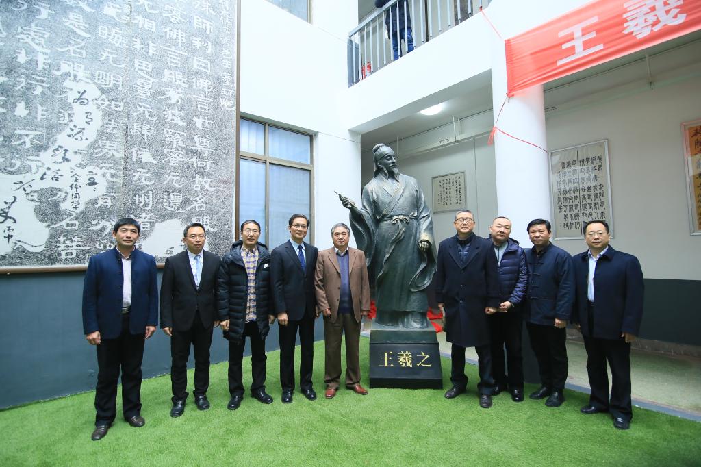 山东省书法家协会常务副主席孟鸿声为我校捐赠“王羲之”铜像