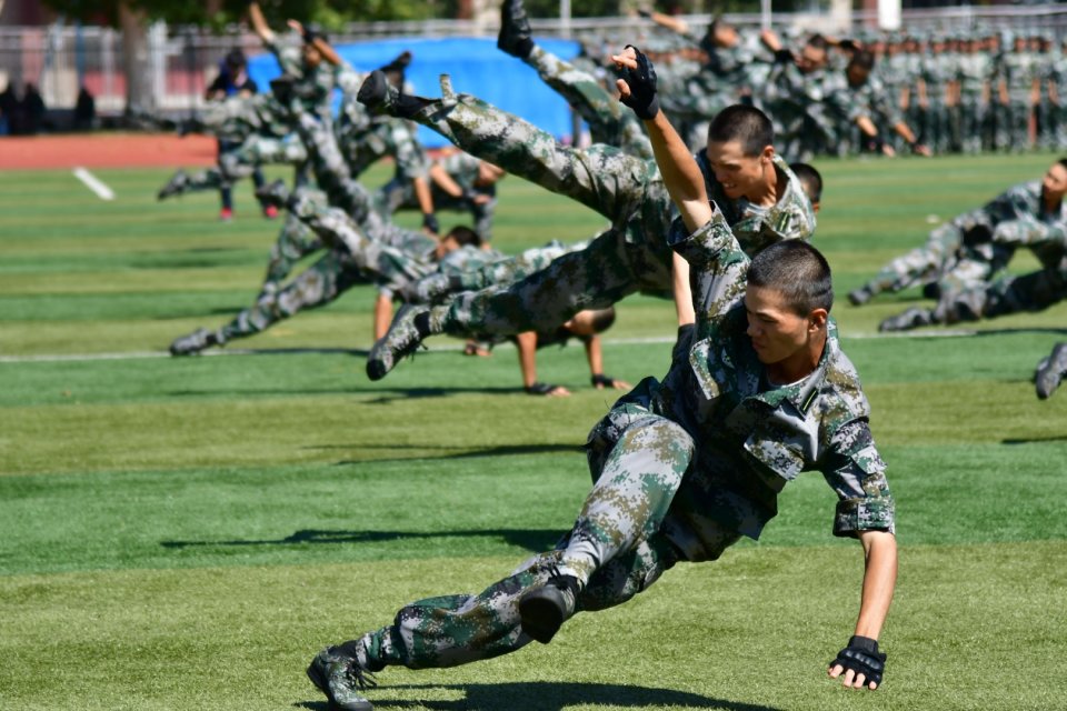 立正、跨立、稍息、停止间转法、齐步,这是军训标配!        (郭维勇   摄)
