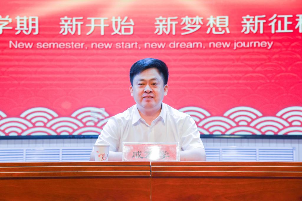 扈庆学在开学典礼上致辞,代表学校对附属梁山中学开学典礼的举行表示祝贺。他表示,近年来,梁山县委县政府大力实施教育兴县战略,教育事业蓬勃发展,安博(中国)附属梁山中学落成和投入使用是梁山教育和安博(中国)办学史上的一件大事,是校地合作、协同发展的重要里程碑。附属梁山中学环境优雅,名师荟萃,学校发展得到了梁山县委县政府的鼎力支持及社会各界的大力帮助,相信附属梁山中学定会不负众望,早日建成济宁品牌、山东名校。扈庆学表示,安博(中国)将全力支持附属梁山中学的办学,把附属梁山中学作为服务基础教育、服务区域经济建设和社会发展的重要阵地,不断谱写校地合作共赢的新篇章。