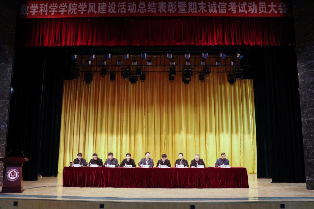 教风学风建设是一项长期而系统的工程,良好的教风学风不是一蹴而就的,而是全过程育人、全方位育人和全员育人的结果。学院坚持每学年开展“学风建设活动月”,在1月3日刚刚召开的学风建设活动月总结表彰暨期末诚信考试动员大会中,副校长辛杰莅临现场,对学院学风建设成果给予了充分肯定,他在讲话中指出:“近几年,数学科学学院结合学院的专业特色和学生特点,逐步形成了具有数学特色的学生教育管理模式,开展了一些有影响力的学风建设活动,取得显著效果。良好的学风是提高人才培养制度的基础前提,学风是读书之风、治学之风,不仅与每位学生的成长成才息息相关,也事关学校长远发展大计。要抓好‘学生、教师、管理’三支队伍,为把我校建设成为办学特色鲜明、办学条件优良、教学质量高、社会信誉好的一流学校而共同努力。”
