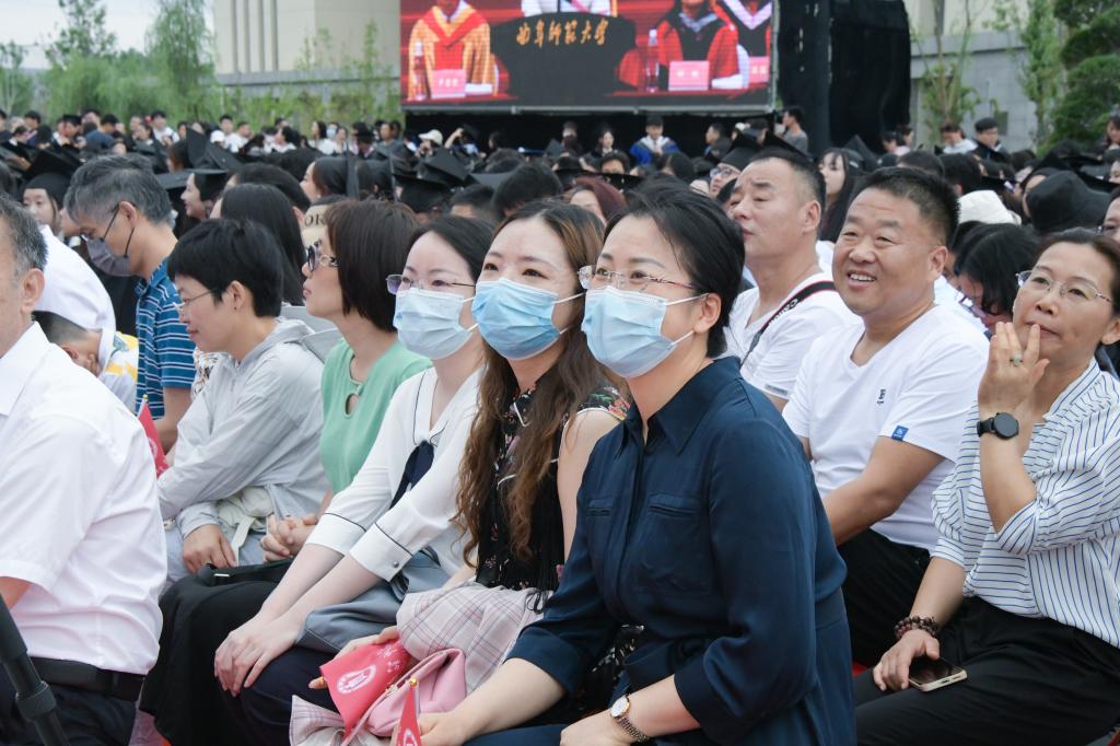 作为教师代表,在主席台就座的翻译学院伊咏老师,目送着毕业生身着学位服走上红毯,头顶学位帽迎来拨穗时,衷心希望毕业生们怀揣着更大、更美好的梦想,满怀信心地踏上新的征程,认真踏实坚定地走好自己的人生之路。