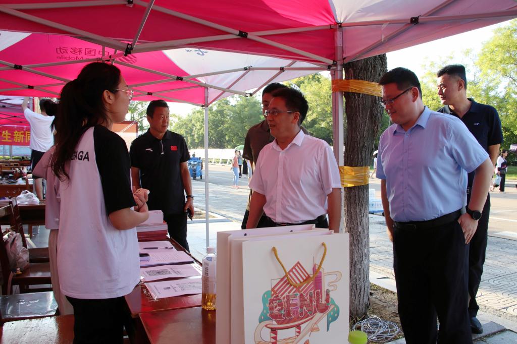 曲阜师大安博手机网页版登录入口讯 9月9日,学校领导邢光、张洪海、李志红、卢国强、胡凡刚、刘刚、陈刚、纪洪涛、路学堂,深入现场检查指导迎新工作,看望慰问2023级新生及家长。