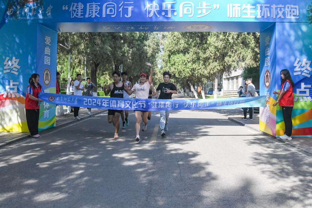 运动会开幕式后,作为本届体育文化节的活动之一的“健康同行 快乐同步”环校园项目火热开跑,环校跑由党委书记邢光鸣枪发令。参赛者们依次跑过科技楼、西校区、西联教室等多处校园标志性地点,用矫健的步伐丈量校园,在体育中享受乐趣、增强体质,健全人格、锤炼意志。