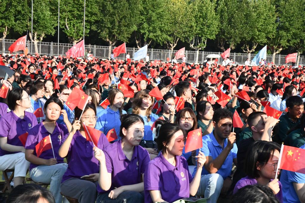 典礼最后,全场师生齐唱校歌、传递校旗。“古今事,家国情,千帆竞发乘长风;犁牛之子,修德立功,忘却一身济苍生。”悠扬的歌声、动人的旋律,伴随着庄严的校旗飘过头顶,一份爱校荣校的归属感与荣誉感已驻留在2024级新生的心间。