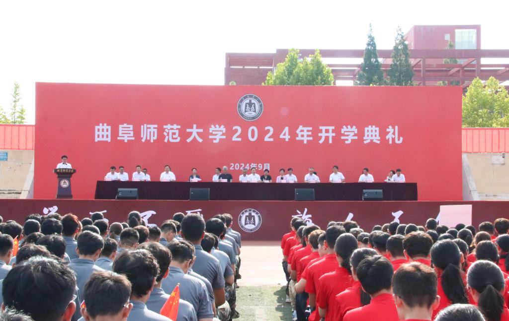 典礼在庄严的升旗仪式中拉开序幕。典礼上,党委副书记、校长张洪海为新生代表佩戴校徽并讲话,寄语新生挺膺担当,奋力书写青春篇章。党委副书记李志红,党委常委、副校长胡凡刚分别在曲阜、日照校区主持典礼。