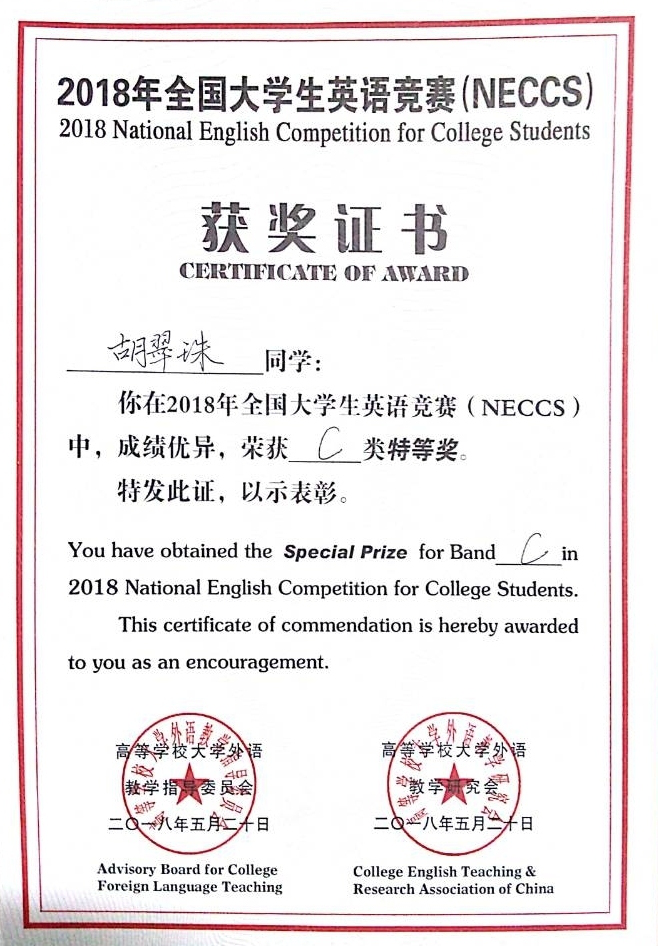 我校学子在2018年全国大学生英语竞赛山东赛区中喜获特等奖